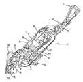 사용자는 또한 누름 버튼(23)의 형태로 청소기에 제공된 스위치에 의해 브러시 바 모터(18)의 구동 및 비구동을 선택할 수 있다.  상기 누름 버튼(23)은 종래부터 청소기의 메인 바디(2)의 상부에서 쉽게 눈에 띄이는 위치에 편리하게 설치되어 있다.  상기 누름 버튼(18)을 사용하여 브러시 바(15)용 모터(18)를 스위치 오프할 수 있다.  예를 들어, 사용자가 카페트가 깔리지 않은 표면을 청소하고자 할 때는 상기 브러시 바(15)를 사용할 필요가 없다.  대안으로, 사용자는 호스 및 청소대 어셈블리를 사용하여 청소할 수도 있다.The user can also select the drive and non-drive of the
