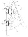 한편, 하측지주(111)에는 상하로 관통홀이 형성된 제1결합판(157)이 고정되고 이 제1결합판(157)에는 그 상부에 위치한 결합구(158)의 제2결합판(159)에 볼트/너트 등의 결합부재(161)에 결합된다.Meanwhile, a