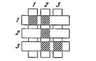 도 5a의 프레임에서, (1,1), (1,2), (2,2), (3,2) 및 (3,3)의 픽셀들이 작동된다.  이를 구현하기 위해, 수평열 1에 대한 "라인 시간" 동안, 수직열 1과 2는 -5볼트로 설정되고, 수직열 3은 +5볼트로 설정된다.  이것은 어느 픽셀의 상태도 바꾸지 않는다. 왜냐하면, 모든 픽셀들이 3~7볼트의 안정 영역 내에 있기 때문이다.  그런 다음, 수평열 1에 0볼트에서 5볼트로 상승한 후 다시 0볼트로 되는 펄스를 가진 스트로브를 인가한다.  이것은 (1,1) 및 (1,2)의 픽셀을 작동시키고 (1,3)의 픽셀을 해방시킨다.  어레이의 다른 픽셀들은 영향을 받지 않는다.  수평열 2를  원하는 대로 설정하기 위해, 수직열 2를 -5볼트로 설정하고, 수직열 1 및 3은 +5볼트로 설정한다.  동일한 스트로브를 수평열 2에 인가하면, (2,2)의 픽셀이 작동되고, (2,1) 및 (2,3)의 픽셀이 해방된다.  여전히, 어레이의 다른 픽셀들은 영향을 받지 않는다.  수직열 2 및 3을 -5볼트로 설정하고 수직열 1을 +5볼트로 설정함으로써, 수평열 3도 마찬가지의 방법으로 설정될 수 있다.  수평열 3에 대한 스트로브로 인해 수평열 3의 픽셀들도 도 5a에 도시된 바와 같이 설정된다.  프레임을 기록한 후에, 수평열 전위는 0(영)이고, 수직열 전위는 +5볼트 또는 -5볼트로 남아있으므로, 디스플레이는 도 5a의 배열로 안정된다.  수십 또는 수백의 수평열 및 수직열로 된 어레이에 대해 동일한 처리가 행해질 수 있다는 것은 잘 알 수 있을 것이다.  또한, 수평열 및 수직열의 구동을 위해 사용되는 전압의 타이밍, 순서 및 레벨은 위에서 설명한 전반적인 원리 내에서 다양하게 변경될 수 있고, 상술한 예는 예시에 불과하고, 임의의 구동 전압 방법을 본 발명에 적용하여도 무방하다.In the frame of FIG. 5A, pixels of (1,1), (1,2), (2,2), (3,2) and (3,3) are activated. To implement this, during the "line time" for