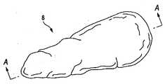 금속분(8)으로서는 도 3a에 도시한 바와 같이 미세한 입상의 금속을 밀어 넣음으로써 형성된 박편상의 것이 이용된다. 도 3b는 금속분(8)의 A-A 단면을 나타내며, 여기에 나타낸 바와 같이 금속분(8)은 중핵이 되는 코어부(8a)와 코어부(8a)의 표면을 덮는 표면부(8b)를 가지는 구성으로 되어 있다. 그리고, 표면부(8b)와 코어부(8a)의 경계에는 표면부(8b)를 구성하는 금속이 코어부(8a) 중으로 확산된 확산층(8c)이 형성되어 있다. 이 구성에서는, 코어부(8a)로서 이용되는 금속종을 주석(Sn) 또는 주석계 합금에서 선택한다. 표면부(8b)는 전기 도금 등의 방법으로 코어부(8a)의 표면을 피복함으로써 형성된다.As the