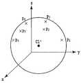 또한, 상기 출력 데이터 선택 수단은, 상기 원 또는 구면의 반경을 소정치로 하여 그 원 또는 구면을 추정하는 것을 특징으로 한다.The output data selecting means is characterized by estimating the circle or sphere by setting the radius of the circle or sphere to a predetermined value.