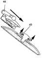 도 14는 조립장치(4)가 대안적으로 스프링 칙(spring cheek)(43)과 함께 돔(dome) 둘레를 회전할 수 있는 슈(shoe)를 통해서도 고정될 수 있음을 보여주고 있다. 스프링 칙(43)이 슈 내부의 리세스 내에 아래로 위치되면, 더블 훅(44)이 록킹장치(38)에 의해 비틀림에 대해 고정된다.FIG. 14 shows that the