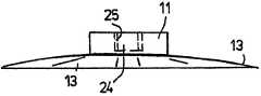 도 6은 가압수단(18)으로서 석션 베이스(2)를 완전히 덮는 뚜껑을 도시하고 있다. 조립을 위해, 가압수단(18)의 중앙 개구부(19)를 관통하여 도 7에 도시된 고정나사(20)가 삽입된다. 이 고정나사(20)는 헤드 플레이트(21) 및 외부 나사산(23)을 가진 스크류축(22)으로 구성된다. 중앙 피스(11)의 내부 구멍(24)은 내부 나사산(25)을 구비한다. 가압수단(18)은 고정나사(20)와 함께 도 2에 도시된 석션 베이 스(2) 위에올려진다. 가압수단(18)은 위로 아치형이고, 고정나사(20)를 통하여 가압된다. 따라서, 스크류 축(22)은 중앙 피스(11)의 내부 구멍(24)의 내부 나사산(25)에 끼워질 수 있다.6 shows a lid which completely covers the