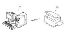 본 발명의 호스트장치(100)는 컴퓨터시스템 등으로 구현되어 프린터, 복합기, 복사기 등의 화상형성장치(200)와 데이터 송수신을 수행할 수 있다. 호스트장치(100)는 텍스트, 이미지 등 인쇄하고자 하는 문서의 인쇄 데이터를 화상형성장치(200)에 전송하며, 화상형성장치(200)는 전송된 인쇄 데이터에 기초하여 용지 등의 기록매체에 화상을 형성함으로써 인쇄를 수행한다. 화상형성장치(200)의 인쇄 방식은 전사 사진 방식을 포함한다.The
