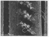 따라서, 본 발명의 중공상 다공질막에서는, 이 다공질막층의 일부를 중공상 편직 끈의 편목을 통과하여 편직 끈 내에 침입시키고, 다공질막층과 중공상 편직 끈을 일체화시키는 것이 바람직하다.Therefore, in the hollow porous membrane of the present invention, it is preferable that a part of the porous membrane layer passes through the knitting of the hollow knitted string and penetrates into the knitted string, thereby integrating the porous membrane layer and the hollow knitted string.