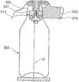 이러한 상태로 피착된 캡 (205) 은, 그 후, 이용자가 음료를 마시기 위해 병 용기 (201) 로부터 분리되고, 또한 음료 마시기를 중지하거나 할 때에 목부 (202) 를 닫는 일이 반복된다.     그런데, 캡 개구단측의 직경이 천판측의 직경보다 작게 되어 있으면, 이용자가 닫을 때에, 목부 (202) 와 캡 (205) 사이의 저항이 커서, 뚜껑을 닫기 위한 토크가 커지기 때문에, 취급에 지장을 초래하는 경우가 있었다.The