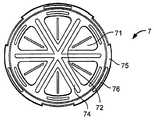 도 5a, 5b 및 5c 는 도 3 에 나타낸 바닥 원뿔부의 평면도, 저면도 및 측면도이다.5A, 5B and 5C are top, bottom and side views of the bottom cone shown in FIG.