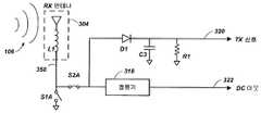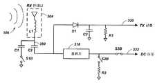 정류기 (318) 는, 저항기 R2 및 접지와 직렬로 접속된 스위치 S2B 에 접속된다.     또한, 정류기 (318) 는 스위치 S3B 에 접속된다.     스위치 S3B 의 다른 측면은 DC 전력 신호 (322) 를 수신 디바이스 (미도시) 에 공급하여, 그 수신 디바이스에 전력공급하고, 배터리를 충전하거나, 이들의 조합을 행한다.The