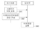 먼저, 마스터폰에서 임의의 대상 모바일폰에 발급된 스마트키의 삭제 요청을, 스마트키 삭제 대상 모바일폰의 전화번호와 함께 도어록에 전송한다(S41, S42). 도어록에서는 삭제 요청에 따라, 삭제 대상 모바일폰에 관련한 정보(즉, 전화번호)를 삭제 처리한다(S43).First, the master phone transmits a request for deleting a smart key issued to an arbitrary target mobile phone to the door lock together with the phone number of the smart key deleting target mobile phone (S41, S42). In the door lock, information (ie, a phone number) related to the mobile phone to be deleted is deleted according to the deletion request (S43).