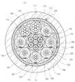 이러한 문제점을 개선하기 위하여, 하나의 케이블 내에, 중심 인장선과, 상기 중심 인장선의 둘레에 배치된 전원 케이블들과, 상기 전원 케이블들 사이의 골마다 삽입된 광섬유 튜브들을 포함시킨 구성이 제안되었다.In order to remedy this problem, a configuration has been proposed in which one cable includes a central tension line, power cables disposed around the center tension line, and optical fiber tubes inserted into the valleys between the power cables.