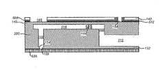 압전 재료의 개시 층은 예를 들어, 약 250 내지 약 300 미크론 두께와 같은, 약 100 내지 약 400 미크론 사이일 수 있다.  압전 재료는 바닥 표면(504) 및 최상부 표면을 가지며, 여기서 바닥 표면(504)은 사실상 모듈 바디(124)에 밀접한 표면일 수 있다.The starting layer of piezoelectric material may be between about 100 and about 400 microns, such as, for example, about 250 to about 300 microns thick. The piezoelectric material has a