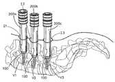 도 23A는 고정 봉이 인체에 삽입될 때 도 13B의 고정 봉 및 홀딩 도구의 예시적인 실시예의 사시도이다.FIG. 23A is a perspective view of an exemplary embodiment of the securing rods and holding tool of FIG. 13B when the securing rods are inserted into a human body. FIG.