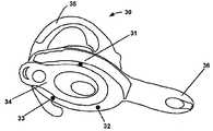 본 발명의 또 다른 실제 실시예가 도 13에 도시되며, 무선 이어폰 (블루투스) 구성(30)으로 되어있다. 이 예에서, 세 개의 마이크로폰(각각의 입력 포트(31, 32, 및 33)를 가짐)이 중앙 배치 라우드스피커(미도시되어 있으며, 하우징의 바깥쪽 표면(34)에 의해 감추어져 있음) 둘레에 분포된다. 이어폰(30)은 또한 종래 방식으로 이어크립(earclip)(35)과 립 마이크로폰 붐(lip microphone boom)(36)을 갖도록 형성된다.Another practical embodiment of the present invention is shown in FIG. 13 and consists of a wireless earphone (bluetooth)
