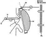 앞서의 설명에서, 포함된 시간 지연을 대략적으로 정량화하기 위해 그리고 설명을 간단하게 하기 위해, 단지 단일 마이크로폰(21)만의 영향이 고려되었다. 그러나, 프로세스는 약간 더 복잡해진다는 것을 알아야 한다. 본 발명자는, 웨이브  프런트가 이어폰 유닛에 도달하고 그 다음에 진행할 때, 계속적인 회절 프로세스가 도 6에 도시된 바와 같이 이어폰의 테두리 아래에서 일어난다는 것을 관측했고, 웨이브 프런트가 이어폰 조립체를 통해 완전히 통과할 때까지, 바깥쪽 귀와 이어폰 사이의 캐버티로의 후속적 음향 누설이 있게 된다.In the foregoing description, in order to roughly quantify the included time delay and to simplify the description, the influence of only a