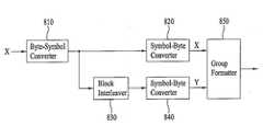 도 15a, 도 15b는 본 발명에 따른 블록 처리기와 트렐리스 부호화부가 연접된 모습을 보인 도면15A and 15B are diagrams illustrating a state in which a block processor and a trellis encoder are connected according to the present invention.