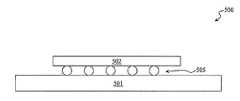 도 5는 기판 보드 상에 배치된 예시적인 집적 회로를 포함하는 시스템을 개략적으로 도시한 도면이다.  도 5에서, 시스템(500)은 기판 보드(501) 위에 배치되는 집적 회로(502)를 포함할 수 있다.  기판 보드(501)는, 일부 실시예에서, 인쇄 회로 보드(PCB), 인쇄 배선 보드 및/또는 직접 회로를 지탱할 수 있는 다른 캐리어를 포함할 수 있다.  집적 회로(502)는 도 1a 및 도 1b 그리고 도 2a 및 도 2b를 참조하여 전술한 집적 회로(100 또는 200)와 유사할 수 있다.  집적 회로(502)는 기판 보드(501)와 전기적으로 결합될 수 있다.  일부 실시예에서, 집적 회로(502)는 범프(bump:505)를 통해 기판 보드(501)와 전기적으로 결합될 수 있다. 다른 실시예에서, 집적 회로(502)는 와이어 접합(도시하지 않음)을 통해 기판 보드(501)와 전기적으로 결합될 수 있다.  일부 실시예에서, 시스템(500)은 컴퓨터, 무선 통신 장치, 컴퓨터 관련 주변 구성, 오락기 등과 같은 전자 시스템의 일부를 구성할 수 있다.5 is a schematic illustration of a system including an exemplary integrated circuit disposed on a substrate board. In FIG. 5,