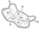 제2 단부 섹션(72a)의 적어도 일부는 용품의 후방 시트측을 따라 대체로 볼록한 제2 단부 절첩 구역(66)을 따라 절첩되거나 또는 상기 제2 단부 절첩 구역을  포함하도록 구성될 수 있다.  또한, 제2 단부 절첩 구역(66)은 용품(20)의 상부 시트측을 따라 대체로 오목할 수 있다.  예컨대, 소정 구성의 제2 단부 절첩 구역(66)을 제공하기 위해, 제2 단부 섹션(72a)은 용품의 횡방향(24)을 따라 연장하는 제2 횡단방향 절첩 라인(86)을 따라 절첩될 수 있다.At least a portion of the