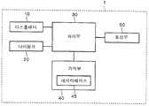 기억부40은, 데이타를 격납하는 메모리를 이용해서 구성되어 있다. 이 기억부40에는 후술하는 데이타베이스45가 격납된다. 통신부50은, 통신 회로를 이용해서 구성되고 있고, 기지국과의 통신을 행한다. 디스플레이10, 다이얼키20, 처리부30 및 기억부40은, 처리부30의 제어하에서 소정의 동작을 행한다. 또한, 휴대전화1에는, 상기 이외에도 안테나, 마이크, 스피커, 전지 및 CCD 등이 설치되어 있다.The