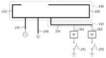 서브 공진 발생부(150)는 메인 안테나부(140)가 생성하는 제1 주파수 대역의 메인 공진을 다른 주파수 대역으로 변경하기 위하여 제2 주파수 대역에 서브 공진을 생성한다. 이를 위하여 서브 공진 발생부(150)는 메인 안테나부(140)의 방사체(210, 220)에 연결되도록 구성된다. 이를 위하여, 서브 공진 발생부(150)는 메인 안테나부(140)의 방사체(210, 220)에 연결되어 분기되는 서브 브랜치 패턴(250), 하나 이상의 임피던스 매칭부(261, 262) 및 하나 이상의 스위칭부(271, 272)를 포함한다. 각 임피던스 매칭부(261, 262)와 각 스위칭부(271, 272)는 각기 대응하며 구비하는 것이 바람직하다. 한편, 도 2에서는 서브 공진 발생부(150)의 서브 브랜치 패턴(250)이 메인 안테나부(140)의 방사체(210, 220)에 물리적으로 직접 연결되어 전기적으로 연결되는 구성을 도시하였다.The