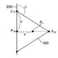 이때, 상기 제2라인(420)이 상기 제1라인(200)으로부터 가장 먼 최외곽 지점(P3p)과 상기 수선의 발(P2h)의 중간에 위치할 수 있으며, 상기 제2라인(420)과 상기 수선의 발(P2h) 사이의 거리는 2x로 나타낼 수 있다.In this case, the