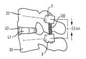 동적 안정화 장치는 특히 부분적으로 퇴화된 추간판의 치료용으로 적합하다. 추간판은 회복을 돕기 위해 스트레스를 완화시켜 주어야 한다. 추간판의 핵이 손상되지 않은 경우, 추간판은 척추의 축선 방향으로 강성(약 500 내지 1500 N/mm의 강성)을 가진다.Dynamic stabilization devices are particularly suitable for the treatment of partially degenerated intervertebral discs. Intervertebral discs should relieve stress to aid recovery. If the nucleus of the intervertebral disc is not damaged, the intervertebral disc has rigidity (stiffness of about 500-1500 N / mm) in the axial direction of the spine.