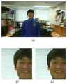 적당한 탐색 범위가 적용된 도 5d의 (b)에서는 얼굴 영역에서 좌, 우 영상이 겹쳐지는 것을 볼 수 있지만, 도 5d의 (c)에서는 넓은 탐색 범위로 인해 발생된 에러 때문에 얼굴 영역에서 좌, 우 영상이 제대로 겹쳐지지 않음을 확인할 수 있다.In FIG. 5D (b) to which an appropriate search range is applied, the left and right images are overlapped in the face area. However, in FIG. 5D (c), the left and right images are in the face area due to an error caused by a wide search range. You can see that this doesn't overlap properly.