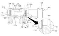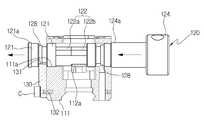 첨부도면 중 도 11은 본 발명에 따른 회전축(121,121')을 교환하는 상태를 나타내는 단면도이다.11 is a cross-sectional view showing a state of replacing the rotating shaft (121, 121 ') according to the present invention.