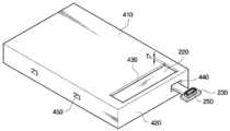 제2 수납 용기 측벽(420)측에 형성된 개구부(431)의 일측에는 연성 인쇄회로기판(200)의 커넥터 실장부(230)가 인출되는 커넥터 실장부 연결홈()이 구비되어 있다.One side of the