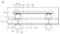 상기 솔더볼(150)은 상기 기판(110)의 제 2 면에 형성될 수 있다. 상기 솔더볼(150)은 상기 기판(110)의 랜드(116)에 연결될 수 있으며, 이 경우 통상의 BGA(Ball Grid Array) 구조를 형성할 수 있다. 상기 솔더볼(150)은 주석(Sn), 납(Pb), 은(Ag) 또는 구리(Cu) 등의 합금을 통해 형성될 수 있으나, 상기 솔더볼(150)의 재질을 한정하는 것은 아니다. 또한, 상기 솔더볼(150)이 구비되지 않는 경우, 상기 기판(110)의 랜드(116)가 제 2 면을 통해 노출되어 LGA(Land Grid Array) 구조를 형성하는 것도 가능하다.