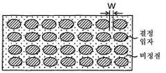 도 1(변경)은 표 1 중의 No.1의 가열 조건으로 결정화시킨 유리의 단면 SEM상의 모식도이다. 석출 결정립계는 석출 결정보다도 저도전율이며 저열전도율의 비정질로 되어 있었다. 이 입계의 폭(W)을 포논의 평균 자유 공정 이상 전자의 평균 자유 공정 이하로 함으로써, 도전율을 저하시키지 않고, 열전도율을 억제하는 것이 가능해진다. W는 유리 조성이나 석출 결정종에 의존하지만, 대략 10nm 이하로 하는 것이 바람직하다.FIG. 1 (change) is a schematic diagram of the cross-sectional SEM image of glass crystallized by the heating conditions of No. 1 in Table 1. FIG. Precipitation grain boundaries were lower in conductivity and lower in thermal conductivity than in precipitation crystals. By setting the width W of the grain boundary to be equal to or greater than the average free step of the phonon, the thermal conductivity can be suppressed without lowering the conductivity. W depends on the glass composition and the precipitated crystal seed, but is preferably about 10 nm or less.