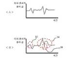 도 3B는 사용자의 입력과 노이즈 입력이 동시에 이루어질 경우에 상기 터치 센서(10)의 출력 값을 나타낸 것이다. 도 3B를 살펴보면, 사용자의 입력만이 있는 경우에 상기 터치 센서(10)가 나타내는 출력 파형(도 2B)이 노이즈에 의해 왜곡되어 상기 집적회로 칩(16)이 사용자의 입력 유무를 오판(誤判)할 가능성이 있음을 알 수 있다. 상기 집적회로 칩(16)의 오판은 휴대 단말기가 오동작(誤動作)하는 결과를 초래한다.3B illustrates an output value of the
