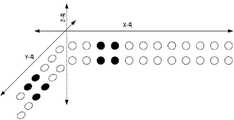 도 6 내지 8에서, 본 발명의 한 실시 예에 따라, Y-축 주변 회전 탐지에 대한 개략적 도면을 도시한다. 도 6은 공동 내로 삽입된 손가락이 Y-축 주변에서 한 방향으로 기울어진 때 수신기의 탐지 패턴을 도시한다. 도 7은 공동 내로 삽입된 손가락이 직립하는 때 수신기의 탐지 패턴을 도시한다. 도 8은 공동 낼 삽입된 손가락이 Y-축 주변에서 제2 방향으로 기울어진 때 수신기의 탐지 패턴을 도시한다. 도 9 내지 11에서, 본 발명의 실시 예에 따라, X-축 주변 회전 탐지에 대한 개략적 도면을 도시한다.In Figures 6 to 8, a schematic diagram of rotation detection around the Y-axis is shown, according to one embodiment of the invention. 6 shows the detection pattern of the receiver when the finger inserted into the cavity is tilted in one direction around the Y-axis. 7 shows the detection pattern of the receiver when the finger inserted into the cavity is standing upright. 8 illustrates the detection pattern of the receiver when the inserted finger to be cavity is tilted in the second direction around the Y-axis. 9 through 11 show schematic diagrams of rotation detection around the X-axis, in accordance with an embodiment of the invention.