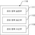 관리 정책 송신부(112)는 복수의 무선 액세스 포인트들(101) 각각과 관리 정책 쌍으로 구성된 관리 정책 테이블을 MDM 클라이언트 어플리케이션에 송신한다. 또는 관리 정책 송신부(12)는 무선 액세스 포인트들(101) 각각과 관리 영역 쌍으로 구성된 관리 영역 테이블 및 관리 영역과 관리 정책 쌍으로 구성된 관리 정책 테이블을 MDM 클라이언트 어플리케이션에 송신한다. 일 실시예에서, 관리 정책 송신부(112)는 이러한 관리 정책 테이블(또는 관리 영역 테이블과 관리 정책 테이블)을 모바일 단말(130)이 관리 영역(120)에 진입하기 전에 전송할 수 있다.The