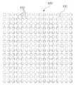 도3을 참조하면, LED모듈결합체(100)는 점등작용을 통해 운전자, 보행자 등에게 차량의 진행방향이나 제한속도 등을 알려주는 문자나 기호 등이 직접적으로 표현되는 부분으로 전광 교통표지판의 형태에 맞게 제작된 함체(200, 도9 참조)에 다수 개가 내장, 설치되도록 되어 있다.Referring to FIG. 3, the