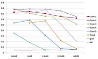 도 7 및 도 8에서 보여주듯이, 화합물1-5 모두가 NK92 세포에서 IFN-γ 생산을 유도하는 것으로 나타났다. 또한, IFN-γ 생산에 대한 각 화합물의 유효 투여량은 매우 다양하였다. 도 7을 통해, 64 nM의 화합물1,3 및4가 동일한 투여량의 원화 메탄올 추출물(P10)에 비해 2~3배 이상 IFN-γ 생산에 대한 유의적인 효과를 가지는 것으로 나타났다. 아울러, 화합물2 (1.6 μM) 및5 (8 μM) 역시 NK92 세포 상에 처리되었을 때 IFN-γ 생산활성을 나타내었다. 도 8을 통해, 본 발명의 화합물1이 40 nM 수준에서도 높은 IFN-γ 생산 활성을 나타내며, 4 nM의 화합물3 및4가 동일한 투여량의 포볼 12-미리스테이트 13-아세테이트(PMA)와 유사하거나 더욱 높은 IFN-γ 생산 활성을 가지는 것으로 나타났다. 이러한 결과를 통해 본 발명에서 유동(Aleuritesfordii)의 잎으로부터 분리한 포볼 타입의 디테르펜 화합물들이 IFN-γ 유도제로써 유용하게 사용될 수 있음을 확인할 수 있었다.7 and, as shown in Figure 8, the compound11 -50 showed that both induce IFN-γ production in NK92 cells. In addition, the effective doses of each compound for IFN-y production varied greatly. 7 shows that 64 nM of