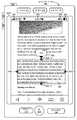 일부 실시예에 따르면, 다기능 장치는 터치 스크린 디스플레이, 제1 배율로 터치 스크린 디스플레이 상에 읽기 전용 콘텐츠를 디스플레이하는 수단, 읽기 전용 콘텐츠 상에서 손가락 제스처를 검출하는 수단, 읽기 전용 콘텐츠 상에서 손가락 제스처를 검출한 것에 응답하여, 읽기 전용 콘텐츠의 적어도 일부를 제1 배율로 계속 디스플레이하면서 터치 스크린 디스플레이 상의 읽기 전용 콘텐츠의 일부분을 제1 배율보다 큰 제2 배율로 확장하는 수단, 읽기 전용 콘텐츠의 확장된 부분 및 읽기 전용 콘텐츠의 확장된 부분 내의 제1 위치에 있는 위치 마커를 디스플레이하는 콘텐츠 확대기를 디스플레이하는 수단, 터치 스크린 디스플레이를 가로지르는 손가락 접촉의 움직임을 검출하는 수단, 콘텐츠 확대기를 움직여 손가락 접촉의 검출된 움직임에 따라 읽기 전용 콘텐츠의 확장된 부분을 변경하는 수단, 손가락 접촉의 검출된 움직임에 따라 위치 마커를 제1 위치로부터 읽기 전용 콘텐츠의 확장된 부분 내의 제2 위치로 움직이는 수단, 위치 마커가 읽기 전용 콘텐츠의 확장된 부분 내의 제2 위치에 위치해 있는 동안 손가락 접촉의 떨어짐을 검출하는 수단, 손가락 접촉의 떨어짐을 검출한 것에 응답하여, 콘텐츠 확대기, 읽기 전용 콘텐츠의 확장된 부분, 및 위치 마커를 디스플레이하는 것을 중단하는 수단, 및 제1 배율의 읽기 전용 콘텐츠 내의 현재 위치에 인접하여 제1 명령 디스플레이 영역을 디스플레이하는 수단 - 현재 위치는 읽기 전용 콘텐츠의 확장된 부분 내의 제2 위치에 대응하고, 제1 명령 디스플레이 영역은 현재 위치와 연관된 콘텐츠를 선택하는 아이콘을 포함함 - 을 포함한다.According to some embodiments, the multifunction device comprises a touch screen display, means for displaying read-only content on the touch screen display at a first magnification, means for detecting finger gestures on the read-only content, means for detecting finger gestures on the read- Means for extending a portion of the read-only content on the touch screen display to a second magnification greater than the first magnification while continuing to display at least a portion of the read-only content at a first magnification; Means for displaying a content expander that displays a location marker at a first location within the expanded portion of the dedicated content, means for detecting movement of the finger contact across the touch screen display, means for moving the content expander Read along Means for moving the position marker from the first position to a second position within the extended portion of the read only content in accordance with the detected movement of the finger contact, means for moving the position marker to the second position within the extended portion of the read- Means for detecting a drop in finger contact while being located in a second position within the first portion of the content, means for stopping displaying a content expander, an expanded portion of the read-only content, and a location marker in response to detecting a drop in finger contact Means for displaying a first command display area adjacent to a current position within a read-only content of a first magnification; a current position corresponding to a second position within an extended portion of the read-only content; And an icon for selecting content associated with the current location.