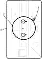 따라서, 터치스크린 입력 디바이스상에서 핑거를 이동시킴으로써 디스플레이 스크린상에 제공된 이미지의 사이즈를 변경하는 실시형태가 도 1 내지 도 6 에 예시된다. 도 1 내지 도 3 은 시계 방향에서 폐쇄 경로를 트레이싱함으로써 디스플레이된 이미지의 사이즈를 확대하는 예시적인 방법을 예시한다. 도 4 내지 도 6 은 반시계 방향에서 폐쇄 경로를 트레이싱함으로써 디스플레이된 이미지의 사이즈를 축소하는 예시적인 방법을 예시한다.Thus, an embodiment of changing the size of an image provided on a display screen by moving a finger on a touchscreen input device is illustrated in FIGS. 1-3 illustrate an example method of enlarging the size of a displayed image by tracing the closed path in a clockwise direction. 4-6 illustrate an example method of reducing the size of the displayed image by tracing the closed path in the counterclockwise direction.