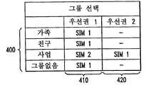 도시된 실시예에서, 모바일 전화(1)에 저장된 전화 번호들은 상이한 그룹들(400)로 구성된다.  전화 번호가 그룹의 멤버가 아닌 하나의 전화 호출에 대하여 선택되면, 그룹 "그룹 없음"이 자동적으로 연관된다.  또한 통신 태스크와 하나 이 상의 SIM  카드 프로파일을 연관시키고 대응 우선권들(410,420)을 규정하기 위한 옵션이 도시된다.  도 4의 실시예에서, 그룹 "사업"은 제 2 SIM 카드 프로파일, 즉 높은 우선권을 갖는 도 1의 SIM 카드(54) 및 제 1 SIM 카드 프로파일, 즉 낮은 우선권을 갖는 도 1의 SIM 카드(52)와 연관된다.  모든 다른 그룹들은 단지 SIM 카드 프로파일 1과 연관된다. 이것은 예를들어 개인 호출들을 위한 하나의 SIM 카드 및 사업 호출들을 위한 다른 SIM 카드를 갖는 사용자를 수용할 수 있다.  사업 목적을 위한 전화 번호들을 갖는 그룹을 규정함으로써, 대응하는 SIM 카드 프로파일이 자동으로 선택될 수 있다.  사업 목적을 위한 SIM 카드가 항상 제공되지 않으면, 도시된 실시예의 경우처럼 다른 SIM 카드가 선택될 수 있다.In the illustrated embodiment, the telephone numbers stored in the