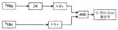 흔들림 정도가이면, 상기 인-존 보호 모드는 상기 측면으로의 가속도가 이거나일 때에 활성화된다.Shake , The in-zone protection mode may be such that the acceleration to the side Or .