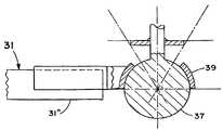 위에서 표시된 바와 같이, 아암(31)의 외측 단부들(31") 사이의 연결 장치는 로프, 케이블, 또는 도 18의 도시된 체인(35)과 같은 가요성 부재일 수 있다.  장치는 또한 도 19 내지 도 21의 볼(37) 및 소켓(39) 설계에서와 같은 다중 방향 운동 자유도를 허용하는 다른 장치일 수 있다.  비틀림 또는 토크력을 감쇄함으로서 이어서 아암(31)이 전개도지 않는다.  또한, 도 18의 실시예에서와 같이, 중앙 섹션(3')은 파도가 플로트(9)를 가압하는 방향과 관계없이 매우 적게 이동할 때 부유 플랫폼(3)의 중앙 섹션(3')은 높은 파도 상태로 더욱 안정되게 남아 있게 된다.As indicated above, the connection between the outer ends 31 "of the