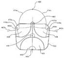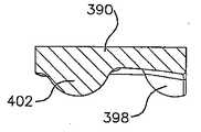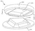 본 발명을 설명하고, 하기 도면에서 본 발명을 도시하는데 있어서, 리세스와 돌출부는 종종 구획된 영역(bounded area)으로 언급된다. 하기 기술내용과 도면에 따라서, 돌출부와 리세스는 종종 평활하게 윤곽이 형성되며, 주변 재료로부터 점진적으로 전이된다. 따라서, 돌출부 또는 리세스에 대해 날카롭게 형성된 변부가 제공되지 못할 수 있다. 예를 들어, 리세스의 형성된 바운더리는 돌출부가 이동되는 영역 또는 인공 관절의 예상된 이용 동안 돌출부와 접촉하는 영역을 나타낼 수 있다. 인공 관절의 몇몇 형상에 있어서, 돌출부 또는 리세스는 리테이닝 벽(retaining wall)이 인공 관절의 움직임의 범위에 대해 양의 제한(positive limit)을 제공하기 위해 이용될 때와 같이 보다 날카롭게 형성된 변부를 가질 수 있다. 그 외의 다른 형상에 있어서, 리세스는 한정되지 않거나 또는 개별 변부를 가지지 않을 수 있으며, 하측 표면에 대해 상측 표면의 움직임을 제한하기 위한 핀과 같은 그 외의 다른 구조물을 가질 수 있다. 따라서, 용어 리세스는 돌출부를 형성하는 일반적인 영역 또는 부분을 형성하는 것으로 폭 넓게 이용되며, 마주보는 측벽들 또는 신장 특성을 가진 구조물로 제한하기 위함은 아니다.In describing the present invention and illustrating the invention in the following figures, recesses and protrusions are often referred to as bounded areas. According to the following description and drawings, protrusions and recesses are often smoothly outlined and gradually transitioned from peripheral material. Therefore, the sharpened portion may not be provided for the protrusion or the recess. For example, the formed boundary of the recess may indicate an area in which the protrusion is moved or an area in contact with the protrusion during the expected use of the artificial joint. In some configurations of the artificial joint, the protrusions or recesses may have a more sharply defined side, such as when the retaining wall is used to provide a positive limit for the range of movement of the artificial joint. Lt; / RTI > In other configurations, the recess may be unrestricted or may not have individual sides, and may have other structures, such as pins, to limit movement of the upper surface relative to the lower surface. Thus, the term recess is used broadly to form a general region or portion that forms a protrusion, and is not intended to be limited to structures having opposing sidewalls or elongation properties.