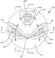 도 1에 도시된 바와 같이, 종래의 인공 디스크는 볼 및 소켓 타입 형상을 포함하거나 또는 2개의 소켓들 사이에 반구형 디스크, 등등을 포함한다. 도 1의 종래의 인공 척추골은 도 3 내지 도 6에 도시된 바와 같이 자연적인 척추골과 유사한 방식으로 이동되지 않는다. 도 7A는 굽힘/신장 및 측면 만곡에 대한 종래의 인공 디스크의 움직임을 도시한다. 상측 척추골 표면(10)의 후부(106) 및 전면(110)는 화살표(114, 118)에 따라 이동한다. 이러한 움직임은 도 4에 도시된 자연적인 척추의 굽힘 움직임(flexing movement) 및 측면 만곡 움직임(lateral bending movement)과 상당이 상이하다. 인공 디스크의 측면 만곡 움직임은 굽힘 움직임과 유사한 반면, 자연적인 척추는 회전 및 굽힘 움직임의 조합에 따라 횡방향으로 굽혀진다. 신체 내에 형성된 압축력은(힘줄과 근육의 긴장 및 신체의 중량, 등등과 같은) 종래의 인공 디스크로 가해지는 압축력에 따라 종래의 디스크가 중립 위치로부터 이격되는 상당히 굽혀지거나 또는 만곡된 위치로 이동시키는 중립 굽힘 위치로 자연적인 척추골을 복귀시키는 경향이 있다.As shown in Figure 1, conventional artificial discs include ball and socket type shapes or include hemispherical discs, etc. between two sockets. The conventional artificial vertebra of Fig. 1 is not moved in a manner similar to a natural vertebra, as shown in Figs. 3-6. Figure 7A shows the movement of a conventional artificial disc with respect to bending / stretching and side curvature. The