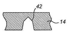 그러나, 당연히, 다른 단면들이 가능하며, 다양한 응용들에 대한 유리한 속성들을 가질 수 있다. 예를 들면, 만입부들은 직선이거나, 또는 볼록하거나 오목하거나 파동 형식으로 구부려지는 벽들을 가질 수 있고, 만입부들의 바닥은 날카롭거나, 둥글거나, 평평할 수 있다.However, of course, other cross-sections are possible and may have advantageous properties for various applications. For example, the indentations may be straight, or may have walls that are convex, concave, or curved in wave form, and the bottoms of the indentations may be sharp, rounded, or even flat.