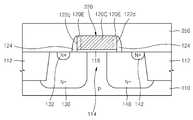 상기 불순물로 도핑된 제1 에지 게이트 부분(220E_1) 및 제2 에지 게이트 부분(220E_2)을 형성하기 위한 이온 주입 공정은 상기 기판(110)의 다른 영역, 예를 들면 PMOS 트랜지스터 영역(도시 생략)에 P 채널 트랜지스터의 소스 영역 및 드레인 영역을 형성하기 위한 이온 주입 공정시 사용되는 마스크 패턴과 동일한 마스크 패턴을 사용하여 그와 동시에 행해질 수 있다.The ion implantation process for forming the first edge gate portion 220E_1 and the second edge gate portion 220E_2 doped with the impurity may be performed in another region of the