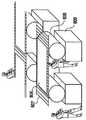 도 15A와 15B는 종래의 단일 플랫베드 머신(도 15A)과 일실시예에 따른 원통형 머신(도 15B)에 필요한 플로어 공간의 비교도.Figures 15A and 15B show a comparison of the floor space required for a conventional single flatbed machine (Figure 15A) and a cylindrical machine (Figure 15B) according to one embodiment.