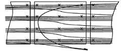 도 25A-25C는 브리틀한 필름에 크랙이 형성되는 방식을 나타내는 도면. 도 23A에 도시되는 바와 같이, 글래스는 위쪽 및 아래쪽 모두에 필름을 가질 수 있고, 중립층이 중간에 형성될 수 있다.25A-25C are diagrams illustrating a manner in which cracks are formed in a brittle film. As shown in Fig. 23A, the glass may have a film on both the upper and lower sides, and a neutral layer may be formed in the middle.