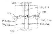 도15에 도시된 바와 같이, 슬레이브 어댑터 케이블(22)의 고전압 전력 와이 어(156, 158)는 커넥터(130, 132)의 핀(1, 5)을 출구 커넥터(134)의 핀(1, 3)에 접속하여, 제어기(20)(도5 내지 도8)로부터 입구 커넥터(130)를 통해 제공되는 고전압 소스 전력이 마스터 히터(16)를 위한 출구 커넥터(132) 및 슬레이브 히터(16')를 위한 출구 커넥터(134)에도 제공되도록 한다.  또한, 커넥터(130, 132) 내의 핀(2, 6)은 사용되지 않으며, 고전압 접속부와 신호 접속부 사이에 공간을 제공한다.  출구 커넥터(134) 내의 핀(2, 4)은 사용되지 않는다.The high