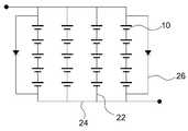 이때, 첨부한 도 4a 내지 도 4c에 도시된 바와 같이 상기 직렬라인(22) 중 선택된 2개 이상의 직렬라인(22)에 바이패스 라인(26)을 병렬로 더 연결함으로써, 다수의 염료감응 태양전지 단위모듈 중 특정의 것이 루프패널의 작동중 손상되더라도, 바이패스라인을 통하여 손상되지 않은 정상적인 염료감응 태양전지 단위모듈로부터의 출력, 전류, 전압 값을 지속적으로 얻을 수 있다.4A to 4C, by further connecting the