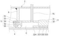 패킹홈은 패킹하우징(32)의 내주면과 신축관(4)의 외주면 사이에 형성되는 틈새를 밀폐시키기 위한 패킹이 설치되는 홈으로서, 패킹파우더 등과 같은 패킹물질(322)이 삽입되는 중앙 패킹홈과, 이 중앙 패킹홈의 양쪽으로 링 형상의 패킹(323)이 삽입되는 좌,우 패킹홈으로 구성되어 있다. 여기서 패킹은 내열 특성과 기밀성이 우수한 것으로 알려진 흑연입 테프론 섬유 아라미드 섬유 패킹(GFO and aramid fiber packing), 그라파이트 섬유 패킹(Graphite fiber packing) 등을 적용할 수 있다. 그리고, 하우징몸체(32)의 내주면 양쪽 단부에는 슬립가이드(324)가 설치되어 신축관(4)이 동심도를 유지하면서 안정적으로 지지되도록 되어 있다.The packing groove is a groove in which a packing for sealing a gap formed between the inner circumferential surface of the packing