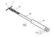 [6] 상기 비틀림 브러시부의 선재, 중간 주상부, 및 본체 주상부로 이루어진 군에서 선택되는 적어도 하나가 수지에 의해 피복되는, 상기 [1] 내지 [5] 중 어느 하나에 기재된 임플란트 내부 청소용 브러시를 제공하는 것이다.[6] The implant cleaning brush according to any one of [1] to [5], wherein at least one member selected from the group consisting of the wire member, the intermediate columnar section and the main body columnar section of the torsion brush section is covered with a resin .